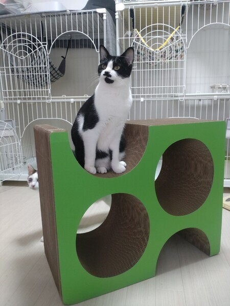 | 特徴(性格など) | 2022.5.11生まれ(推定) 毛色:白黒 女の子だけど、立派なお髭の持ち主 ハニー。 兄妹猫の ビターととっても仲良しです。 毎日元気いっぱいニャンプロ三昧。 少し臆病なところもありますが、新しいものには興味津々で突撃!! 遊ぶの大好き、食べるの大好きな 女の子です。 ゴハンの時は大きな声でアピールします♡ いつまでも赤ちゃん気分が抜けず、自分のお腹をチュパチュパ、 エアーフミフミしている姿がとても愛らしいです♡ |