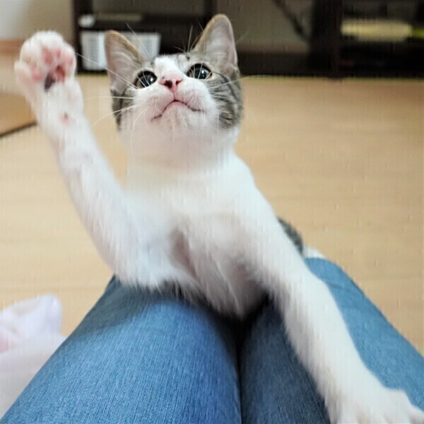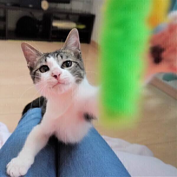 | 特徴(性格など) | 【仮名】ふうくん 【性格】おもちゃ遊びが大好き!元気いっぱいな男の子♪ おもちゃ遊びの時やおやつを貰う時はお膝に乗ってくれます♪♪ ナデナデと抱っこは練習中! 寝ている時なら出来るようになりました☆ くっついてっ昼寝してくれたり、日に日に距離が縮まっています! 一緒に暮らしていく中で甘えん坊さんになりそうな感じです☆ ふう君のペースで慣れるのを待って下さる里親様に託したいと思います☆ 一緒に暮らしているまつりちゃん・みきちゃん きんかん君・しらす君とのペアでお迎えを希望しますが 環境によっては1匹でもいいかなと思いますので お気軽にご相談ください♪ ※1ピキ譲渡応相談 |