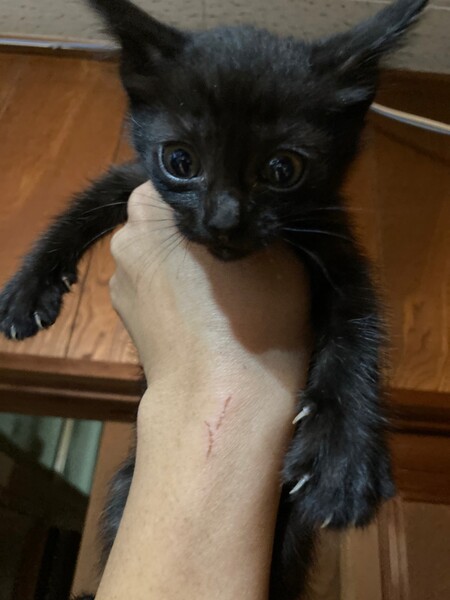 | 特徴(性格など) | 2022年8月24日施設生まれのピカピカ黒猫子猫ちゃんです。 兄妹の中でも1番体が小さいのに性格は自己主張強めな赤ちゃんでした!将来が楽しみな女の子です! ご飯タイムに「私はここよー!何か食べたーい!けどおっぱいの飲み方しか分からなーい!」といつもケージのドアの前を陣取っていました(笑)最近は少しお姉さんぽくなってきてフードもカリカリなど食べれる様になり安定しました!が、ドアの前はいつもこの黒っ子ちゃんが陣取ってます!なぜ?! 甘えんぼさん探されておられる方必見です! まだ丼茶碗に収まっちゃう手のひらサイズの可愛いお姫様でーす! ・検便・害虫駆除済み |