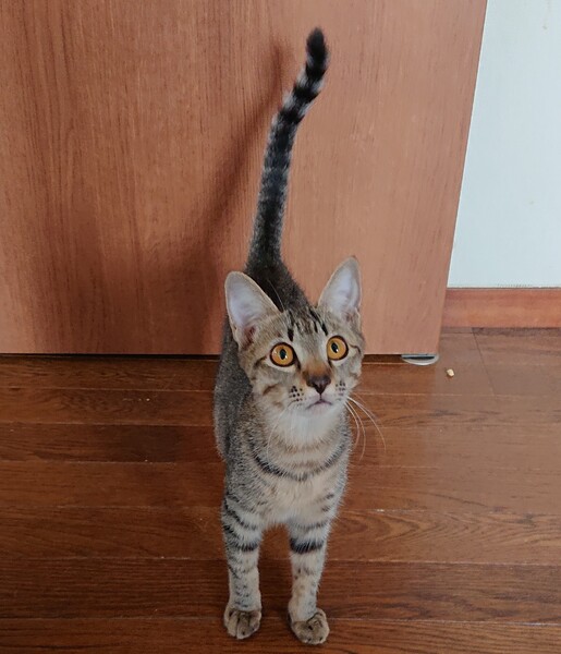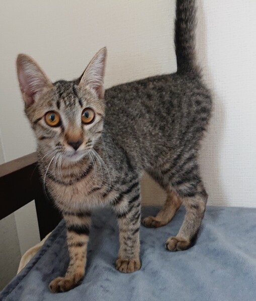 | 特徴(性格など) | ☆キジトラ ☆初年度ワクチン2回済み、エイズ白血病検査済み(陰性) ☆便検査、駆虫済み ☆兄妹の中で紅一点の美人さん。 いつもお兄ちゃん達を探して後を追ってる感じです。少しビビりですが、慣れれば凄い甘えん坊。可愛く可憐な女の子です。 1匹飼いでも先住猫さんがいても、お留守時間が長いご家庭でも、賢い子なのできっと大丈夫です。よろしくお願いします。 |