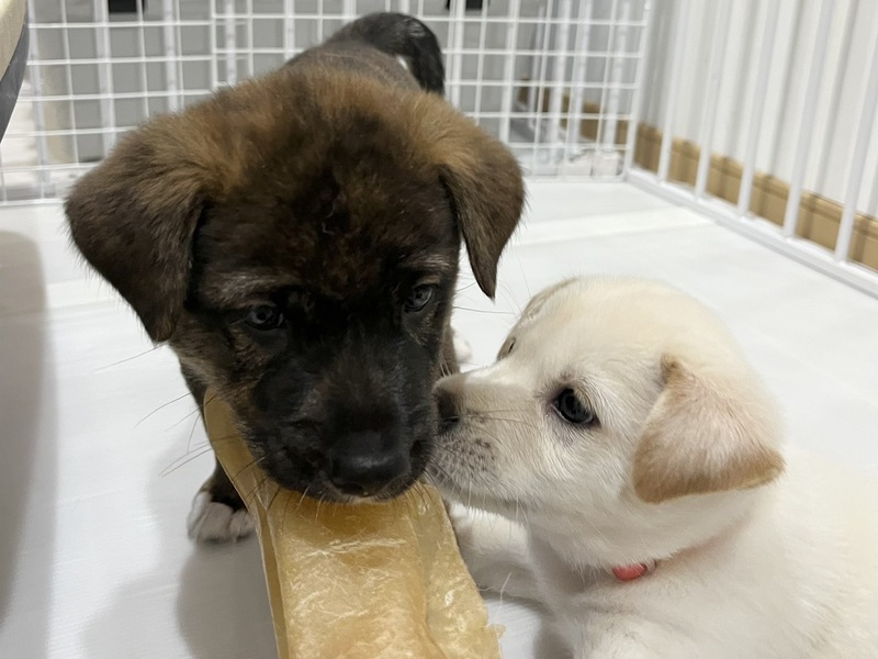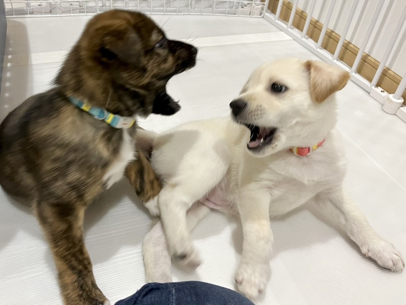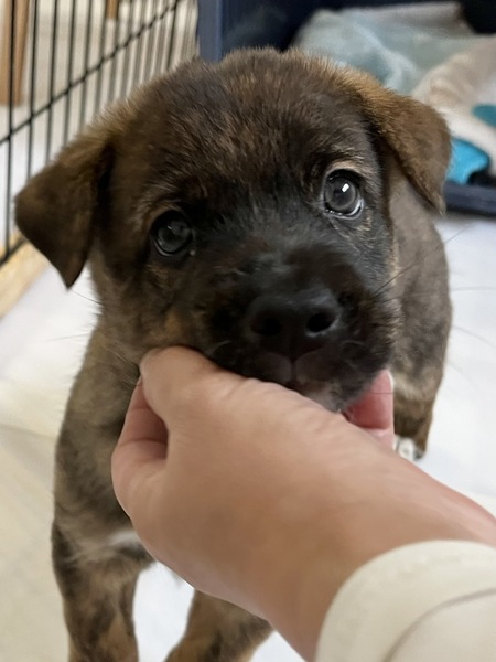 | 特徴(性格など) | (仮名)あーたん 現在所在地 千葉県 市川市 種類 雑種 年齢 子犬 (生後6週) サイズ 中型犬 雄雌 ♂オス ワクチン 未接種 去勢 去勢していません 単身者応募 不可 高齢者応募 不可 英語対応 不可 【はじめに】「いつでも里親募集中」からのお問い合わせは正式なお申し込みになりません。ご応募は必ずアグリドッグレスキュー応募アンケートフォームよりお願いいたします。 あーたん(仮名) ・MIX子犬の男の子 ・生後6週くらい ・体重3.4kg(10月15日現在) ・便検査済 〇今後の医療 ・子犬ワクチン接種 ・狂犬病予防注射接種 ・不妊手術 ・マイクロチップ装着 犬も人も大好きで、いつも誰かのそばにいたい甘えん坊な あーたん。 おっとりマイペースな あーたんは、ちょっぴりシャイてな部分もありますが、基本遊ぶのが大好きでくっつき虫な男の子です。 かわいい子犬との生活は、賑やかで楽しくてとても幸せなものですが、パワフルな子犬をお世話する中には、大変なことも多くあります。以下をよくお読みいただき、覚悟をもってお迎えくださるご家族様からのご応募をお待ちしています! ※ 一緒に保護している「ちーたん」と兄妹です 【食事】 現在は1日5回、ふやかしたフードを食べています。 犬にとって楽しい食事の時間は、遊びや学びの時間でもあります。お皿で食べるだけでなく、ときには知育玩具を用いるなどの工夫をし、食事の満足度を高めていただきたいと思います。 【排泄】 新しい環境では一からのトイレトレーニングが必要になります。トイレのタイミングを見計らって誘導する、成功したらその場でごほうびをあげる、失敗したらすぐに片付ける等、トイレが定着するまでは、目を離さず、叱らず、根気強く、おおらかな気持ちでトレーニングをお願いします。 【生活】 朝から晩まで、1時間たっぷり遊んで2時間寝る、の繰り返しです。子犬は一人では遊べませんので、引っ張りっこなどの相手になり、十分に満足し、疲れて眠たくなるまで一緒に遊んであげることが必要になります。夜中でも遊びたくなることがありますし、環境が変わり夜泣きをする場合もあります。 【散歩】 譲渡時は、抱っこ散歩で外の環境に慣らす段階になります。外慣らしの継続と、ワクチンが全て済みましたら朝晩最低でも1時間ずつのお散歩が必要になります。 散歩時の逸走は命にかかわりますので、ダブルリードの使用、伸縮リードの使用禁止をお願いしています。中学生以下のお子様やご高齢の方がリードを持つことも禁止とさせていただいております。 【室内の環境設定について】 ケージを使用しない室内フリー飼育をお願いしています。ご家族様と同じスペースで家族の一員として生活できるようにお願いします。 好奇心がいっぱいの子犬ですので、いろいろな物に興味を持ち、なんでも口にしようとします。誤飲誤食には細心の注意と対策が必要です。また、いくら対策をしても、子犬は床、壁、家具、あらゆるものをかじりますので、そんな時でも叱らずに受け止めていただきたいと思います。賃貸住宅ですと、退居時のトラブルにつながることも考えられます。 すぐに大きくなり運動能力も高く力も強くなりますので、大切な命を守るため、脱走防止の扉や柵の設置などは万全の対策をお願いしております。 子犬は見守るだけでは育ちません。お世話は全て子犬のペース、その都度の対応が必要になります。 ご家族様の生活の中に、子犬にかけられる時間的、経済的、精神的余裕が十分にあるか、よくよくお考えいただきたいと思います。 十数年後には介護が必要になるときがくるかもしれません。当然医療費もかかります。体重20キロの老犬を介護する体力と気力に自信はありますか?覚悟はありますか・・・? まだ始まったばかりの真っさらな犬生。消えてしまったかもしれない小さな命です。 子犬との暮らしの喜びはもちろんのこと、大変さも十分ご理解いただき、その大変さをも一緒に楽しんでくださるようなご家族様に、最後のバトンを託せることを願っています。 これから一緒にたくさん学び、たくさん遊び、生涯大切な家族として守り、惜しみなく愛情を注いで下さる優しいご家族様からのご応募を、心よりお待ちいたしております。 ◉預かりブログ・譲渡条件を【必ず】熟読の上、下記『アグリドッグレスキュー応募アンケートフォーム』よりご応募ください。 預かりブログ『仮母はじめました!』 →https://ameblo.jp/micteru/ 譲渡条件 http://aguri.nomaki.jp/z.html ★【犬の里親募集アンケートフォーム】★ http://my.formman.com/form/pc/HSiHA19xGo1sxlwu/ |