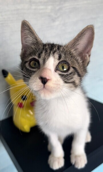 | 特徴(性格など) | 保護時は体調がよくありませんでしたが、安定し元気になりました(^^) おっとりさんでマイペース。人のことも大好きです♪ 食欲旺盛で元気に走り回っています。兄妹のニンフィアくんとも仲良しです。 ・ノミダニ回虫駆除済み ・エイズ(−)白血病(−) ・3種混合ワクチン接種済み |