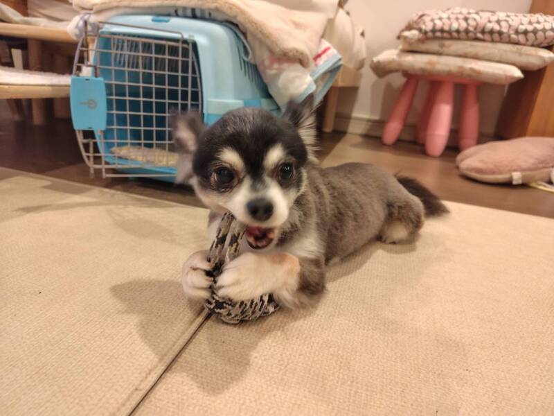 | 特徴(性格など) | 【犬種】 ロングコートチワワ 【カラー】 ブラックタン&ホワイト 【体重】 3.0kg 【性格】 まだ来たばかりなので人とは距離を取りますが、日々少しずつ甘えてくるようになっています。ワンコとはとてもフレンドリーで、仲良くじゃれて遊びます。 【ご飯】 ドライフードに手作りや缶詰めをトッピングしています。 【お散歩】 練習中です。 【お留守番】 フリーでしています。 【トイレ】 練習中ですが、トイレシートの認識はあります。 【その他】 10月3日に去勢手術と歯科処置が済みました。 2022年9月2日に保護。 ネーミングは東京都千代田区シリーズです。 |