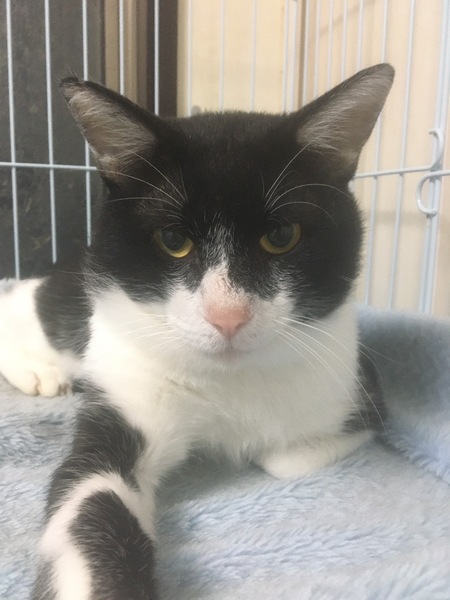| 特徴(性格など) | 丸顔でふくふくと艶の良い白黒くん。傍に来るのでじゃらしで遊ぼうとするのですが、知らん顔します。マイペースでひょうきんな子。赤ちゃん猫の時に保護されました。きちんと向き合ってくれる飼い主に恵まれれば、可愛いおもしろい子になると思います。同時掲載の市(いち)と兄妹です。 ・エイズ白血病共に陰性 ・不妊手術済・ワクチン3種済 ・ノミダニ駆除済 |