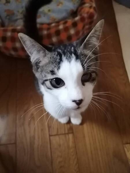 | 里親募集する理由 | 公園でわずかなエサをもらい 雨風もしのぐ場所もなく 猫かぜに感染 左目は白濁があり眼球も少し小さくなっていますが室内生活には何ら問題ありません この子の個性とご理解いただける寛容な方 お待ちしております |