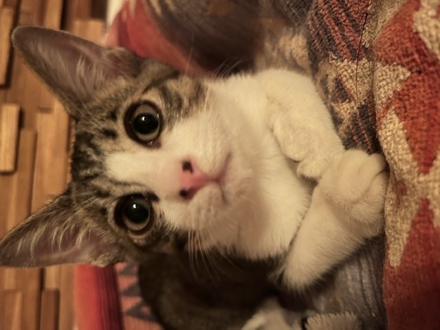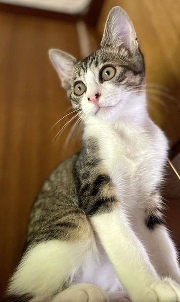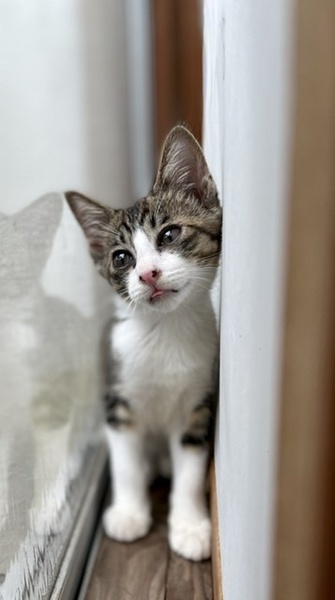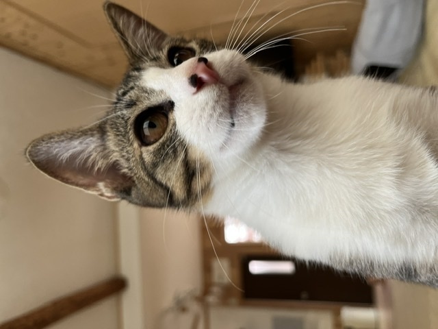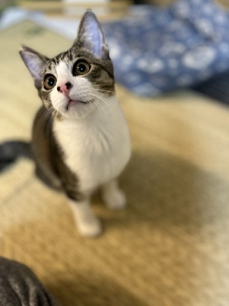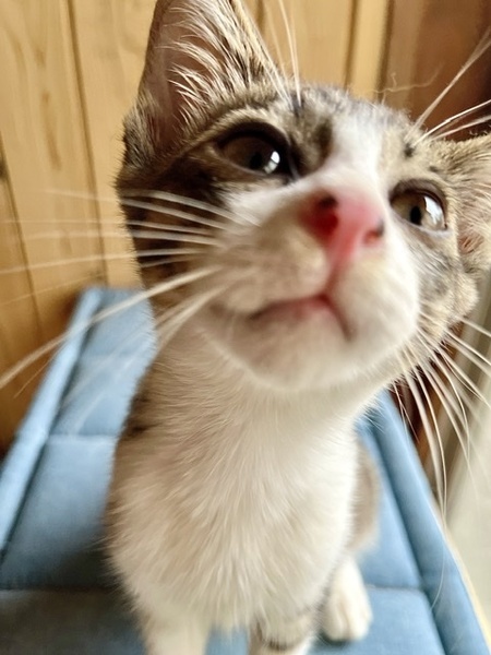 | 特徴(性格など) | 元気いっぱいで好奇心旺盛、毛艶もよく白い毛はキラキラしています。 呼んだら駆けつけてくれたり、守ってくれてるような仕草をするので、まるで小さなナイトのような子猫です?? |