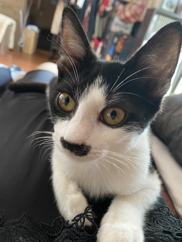 | 特徴(性格など) | ハチワレの白黒の子猫です。 甘えん坊で人懐っこく、撫でられたり、一緒に寝ることが大好きな子です! 食べることも好きなので、ご飯のあげすぎ注意です(笑) |