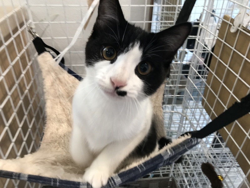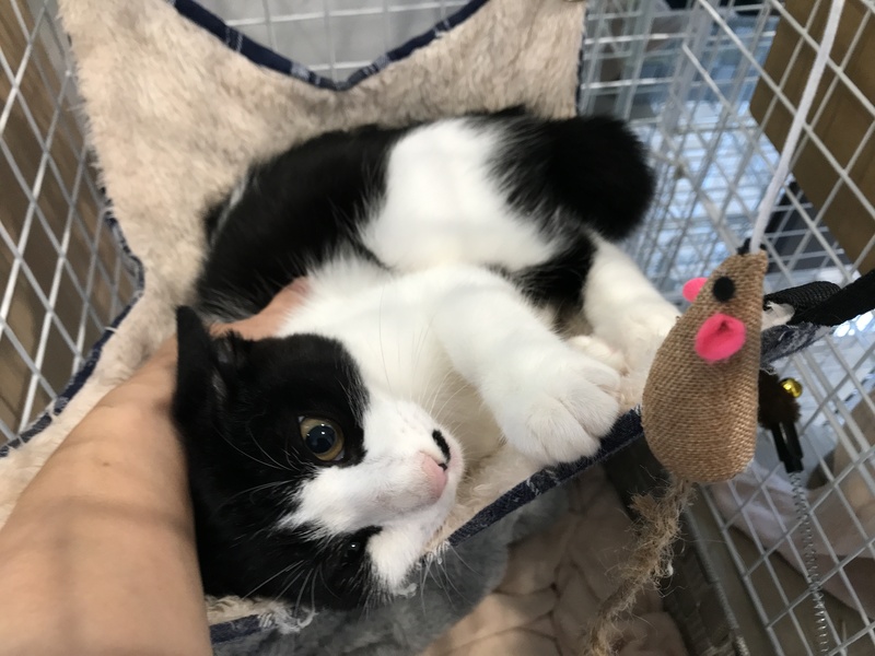 | 特徴(性格など) | 白黒でしっぽが短めです。 非常に人が好きで、近づいただけでグルグルいいます。 (慣れない場所や人には震えてかたまりますが) とてもかわいいです。 |