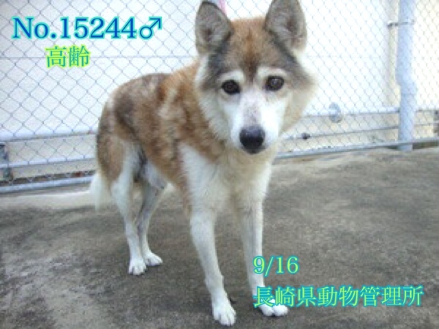 | 里親募集する理由 | 小柄な中型雑種、穏やかで大人しく優しいワンコฅ•ﻌ•ฅ 若くはなく高齢(推定13歳以上と思われます)の凄く可愛いくりくりおメメ、フサフサ毛の男の子が寂しく助けを待っています! 訳も分からず突然連れて来られて収容され、どんなに寂しく心細いか。一日も早く温かい家庭の中で過ごさせてあげたいです。 ⭐️県外、遠方の方でも譲渡の条件が合い、良縁に恵まれましたら里親になっていただけますのでどうぞ宜しくお願い致します! ※ ※ ※長くなりますが犬猫と里親様の幸せの為にも、募集内容を熟読し、必ずご家族とよく相談をされた上、ご家族全員の賛同を得られてからのお問い合わせ をお願い申し上げますm(_ _)m ⭐️外飼いでは無く、室内飼育で家族の一員として迎えて下さる方、「引き渡し方法」のところにあります【アンケート】にご回答と共にお問い合わせをいただけますよう、お願い申し上げますm(_ _)m 長崎県島原市大下町にて彷徨っていたところを保護され9/16に保健所収容、飼い主のお迎えが無いまま期限が切れ、管理所へ移送されてきました。 ひとりぼっちでいつから彷徨っていたのか( ; ; )暑さや空腹、雨風にも苦しんだことでしょう。 それから保健所に、その後は初めての知らない場所に移送されてきてずっと不安で寂しいと思います。。 写真では大きめに見えるかもしれませんが体高はさほど高くなく、小柄な中型で体重は約8キロ位、マンションでも飼育しやすいサイズですฅ•ﻌ•ฅ 被毛はフサフサしていて特に尻尾がモフモフです♡ 今までどう生きてきたのか…?知る由もありませんが、首輪に係留用のフックが付いたままの状態でしたので、外に繋がれて飼われていたと思います( ; ; )もう歩行はゆっくりで足腰が弱ってきている様子、目は殆ど見えていない感じですが光は分かるようです。 耳も遠くなっているかと思いますが、おいでと呼ぶと来てくれます。 撫でると嬉しそうに甘える仕草を見せ、口元に手を差し出すとそっと舐めてくれます。 とっても優しいおっとりクンฅ•ﻌ•ฅ ブラッシングをしても大人しく受け入れて、人や他犬に攻撃的な面は一切ありません。 本当に穏やかな性格の良い子で吠えたり鳴いたりも観察されていません。食欲も有り、手からも食べてくれます(^^) 可哀想に汚れていてブラッシングやシャンプー、口腔ケアなどをしてもらえていなかった様子( ; ; )爪は伸びているし歯石もついていますが毛並みはさほど悪くはありません(^O^)/ 綺麗にブラッシングやシャンプーなどケアをしたらもっとふわふわ美犬君になる事でしょう(^^) 犬舎の中を時折ウロウロと旋回するような行動をとる時もありますが殆どの時間を寝て過ごしている状態です。 優しい職員さん方が怖くないよ、余生は、今度こそは幸せになれます様にと毎日触れ合いながら、一生懸命にお世話してくださっています。 職員さんが段差に気を付けながら連れ出してくれるお散歩は嬉しそう♪楽しそうに尻尾を振りながらゆっくり歩いています。 未去勢で片足を上げて排尿しますがリードの引きの強さは全く無く、愛おしい子です。 ※でももしかしたらの急な走り出しや後退りからの首輪抜け・胴輪抜けなども想定し、どんな子であっても油断は禁物で脱走、逃走には常に充分な配慮と注意が必要ですm(_ _)m 年老いてきたこの子のペースや体力をみながら寄り添う時間を取ることの出来るご家庭を希望しておりますm(_ _)m 捨てられたのでしょうか、迷子でしょうか。何故ここに居なければならないのでしょう。 人間よりはるかに短い犬生なのに。 何故大切な家族を直ぐに探さないのか、 何故最後迄愛せないのでしょうか… 保護時、古びて痛んだ青い首輪に繋留用のフックのみが付いており、迷子札や鑑札などは何もついていませんでした。 (今している写真の首輪は管理所で付けたものです) 可哀想に、家族の元へ帰りたい、でも収容されたら帰れません。 言葉を持たない大事な家族を守る為に首輪、胴輪には迷子札・鑑札を必ずつけて頂きたい、そしてそんな悲しい状況のままでいたより保護されて良かったと考え、余生は幸せにゆっくり過ごせる温かい本当の、本物の家族を見つけたいと願っております⭐︎⭐︎ ⭐️必ず室内飼育で、譲渡後速やかに病院受診、健康診断、(血液検査、尿便検査、ノミダニ・フィラリア予防やシャンプー等)混合ワクチン接種をする事が可能な、なるべくお留守番が少ない、沢山優しくスキンシップやコミュニケーションで触れ合っていただけるご家庭。 ⭐️狂犬病予防接種、フィラリア予防や混合ワクチン実績の有無は不明です。 フィラリア陽性の可能性も有り得る事となります(>_<) ⭐️高齢の為室内でのトイレトレーニングは難しいかもしれません。 未去勢で片足を上げて排尿します。 何かと手がかかり大変ですが(マナーベルトやL字型のトイレ、広めにペットシートを用意など)覚悟と根気・理解で受け入れて下さる方。 ⭐️出来れば中