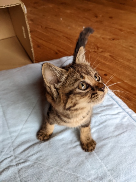 | 特徴(性格など) | サビ色の子猫です。人懐っこく、かわいい目でじっと見つめます。 | ||