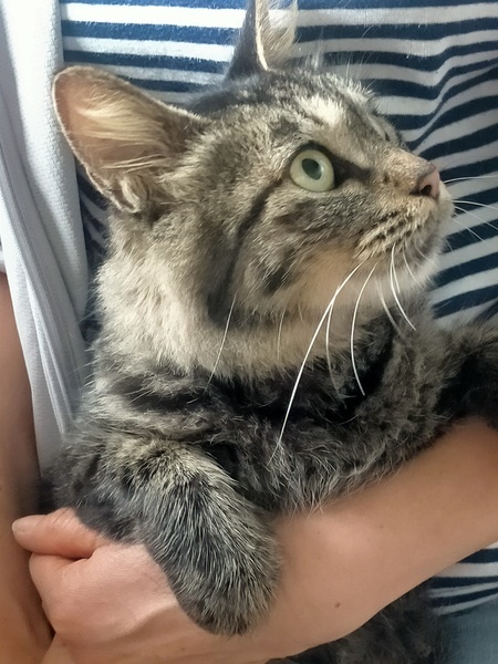 | 特徴(性格など) | 小柄でキジトラ長毛な美人さんです。フサ尻尾が可愛いポイント。大人しくて、検査や採血もまったく暴れませんてした。初めての人にも触らせて甘えてくれます。子猫3匹を産んで子育て中のしっかり母さんです。 | ||