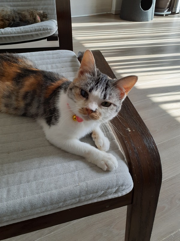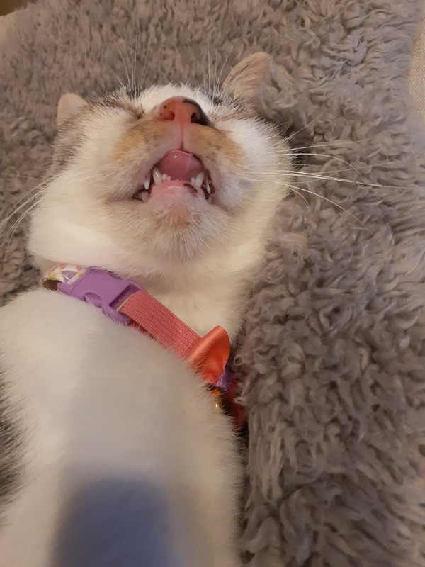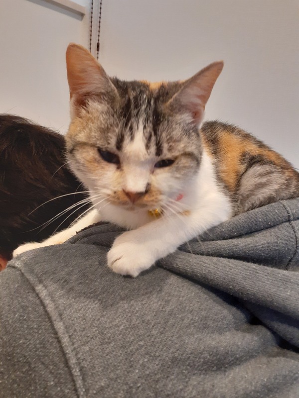 | 特徴(性格など) | 三毛猫で小型です。 性格はジャイアンです。 私が1番性格です。 とても甘えん坊で他の猫が寄るとヤキモチします。 食欲旺盛。 めちゃくちゃ可愛いです。 こんなに甘えん坊な子はなかなかいません。 愛護センターから引き出した子です。 保護時から右目白濁しています。 前歯上下ありません。 |