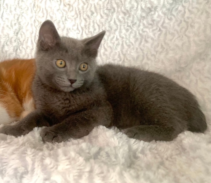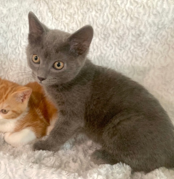 | 特徴(性格など) | 【仮名】ボンボンくん 【性格】ベルベットグレーの毛並みがナデ心地サイコーなボンボンくん♪ 目はブルーじゃないけどロシアンブルーと同じ毛並み♪ なんかヌイグルミみたいなモチモチ感がたまりません(笑) が!人馴れはまだ修行中(泣) ナデナデゴロゴロですしごはんアピールも出来るのですが 自分から甘えに来るのはもうちょっと時間が必要かな? おもちゃ遊びもイイ感じなのでもう一息ですね♪ ぜひ皆さんの有り余る愛情でベタ馴れにゃんこに育てて下さい♪ 兄妹のクッキーちゃんとのペアでお迎えをお願い致します♪ ※1ピキ譲渡不可 |