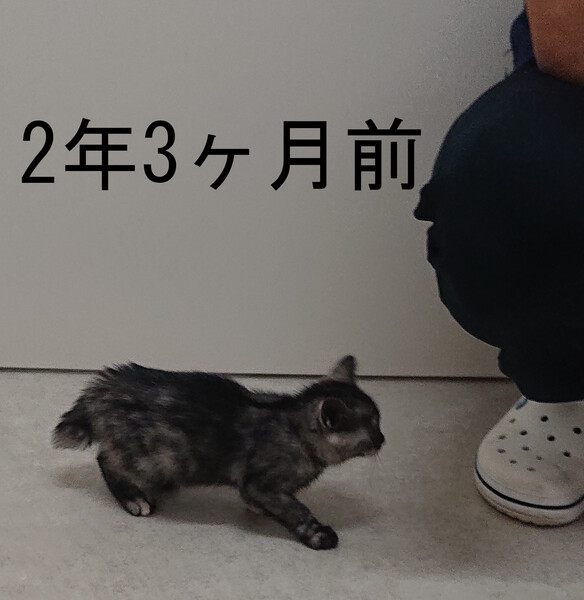 | 特徴(性格など) | 動物病院のお医者さんから「この柄のネコは珍しい」と言われるくらい、オンリーワンな柄で、サバトラ系のカギ尻尾ちゃんです。右手が黒で左手が白という色違いがチャームポイントです。体重2kgで小柄でスマートです。 「ネコは家につく」と言いますが、ココちゃんは「人につく」というような甘えん坊です。足にスリスリしたがるので、歩くときに気をつけないと蹴飛ばしてしまう可能性があります。 台風が特に苦手で、家族にべったりになります。 知らない人が来たときは「ササッ」と身を隠す一方で、徐々に心を開いていく柔軟性も持ち合わせております。 排泄はトイレでしてくれます。お風呂は非常に大人しく入ってくれますし、爪切りも手際よくすれば逃げ出すことも少なく、とてもお世話しやすい子だと思います。 好奇心旺盛で遊び好きですが、家ネコで外に出たことがないので、たまに外に抱っこして出ても忍者のように家に逃げ帰る臆病な側面もあります。 |