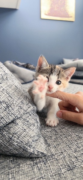 | 特徴(性格など) | 仮名・Sちゃん 兄妹のRくんと毎日取っ組み合いをしています。 とても元気で活発です。 最初は預かり宅の先住猫にも小さい体でシャーシャーしていました。 人が大好きで、大人から幼児までくっついて寝ます。 ご飯はカリカリもウエットも食べられますが、ミルクも大好きで哺乳瓶で与えています。お皿に出すと興味が無くなるようです。 猫じゃらしで遊ぶのも大好きです。 日々活発になっていく姿を里親様にも味わっていただきたいです。 子猫ですので、兄妹一緒の譲渡も大歓迎です。(Rくん) |