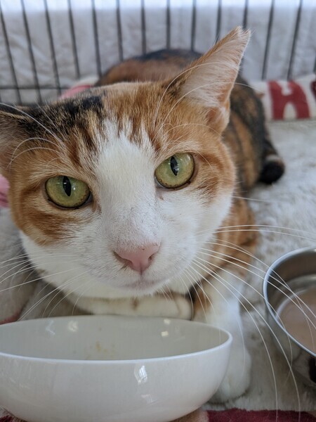 | 特徴(性格など) | 2019.9.15生まれ(推定) 毛色:三毛 大人しくて控えめな性格の女の子です。 お留守番もバッチリなので、奈々子にお任せください!! 人間が見ていない間に、音を鳴らしながら美味しそうにごはんを食べます! お気に入りはシーバのカリカリです☆ なでなでも好きで、しつこくしない限りは気持ち良さそうに喉を鳴らしてくれますよ〜! お外で保護主さんからご飯を頂いて生活していましたが、 2022年9月にねこけん千葉支部へやって来ました。 新しい環境に慣れるまで、ゆっくり見守って頂けると幸いです。 |