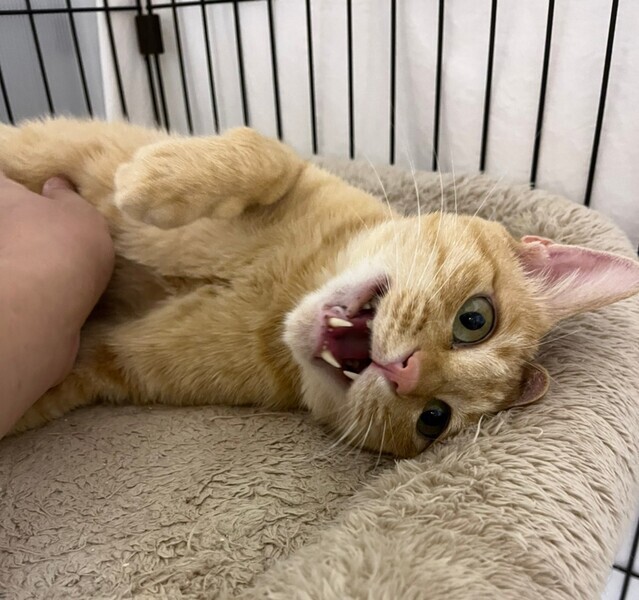 | 特徴(性格など) | 2016.7.7生まれ(推定) 毛色:茶トラ クリっとしたお目目が可愛い男の子。 元気いっぱいで人間にも甘え上手です! 抱っこも大好き♡ ボランティア達に毎日抱っこされまくっています!! 保護部屋の大人猫同士だと、「俺は強いぞ☆」オーラを出してしまうことも あるようですが、子猫と仲良く遊んでくれる良きお兄さんです。 とにかく甘えん坊なので、エースだけを 甘えさせて下さるようなご家族様と出会えたら嬉しいです。 |