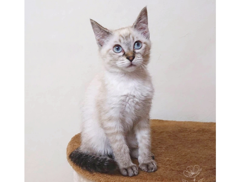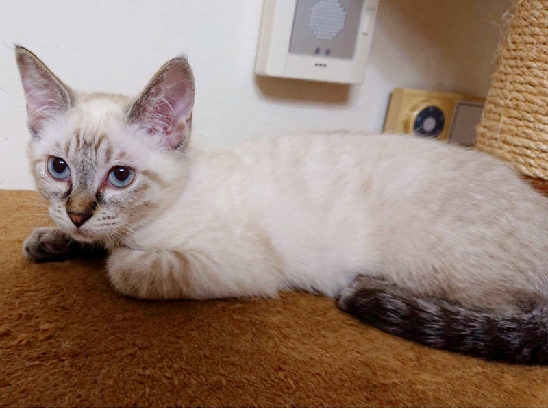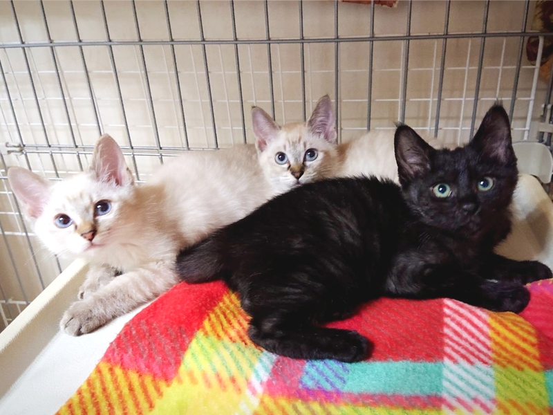 | 特徴(性格など) | ★笑♀ ★毛色:シャム風 ★生後2ヶ月位 ★避妊:未 ★健康状態:問題なし ★駆虫:済み ★ワクチン:済(1回目) ★猫エイズ:近日検査予定 ★白血病:近日検査予定 ★性格その他:3兄妹の紅一点♪可愛いお顔ですがかなりのお転婆さんです。 できれば兄妹2匹一緒に飼ってもらえる方がいると嬉しいです。 |
