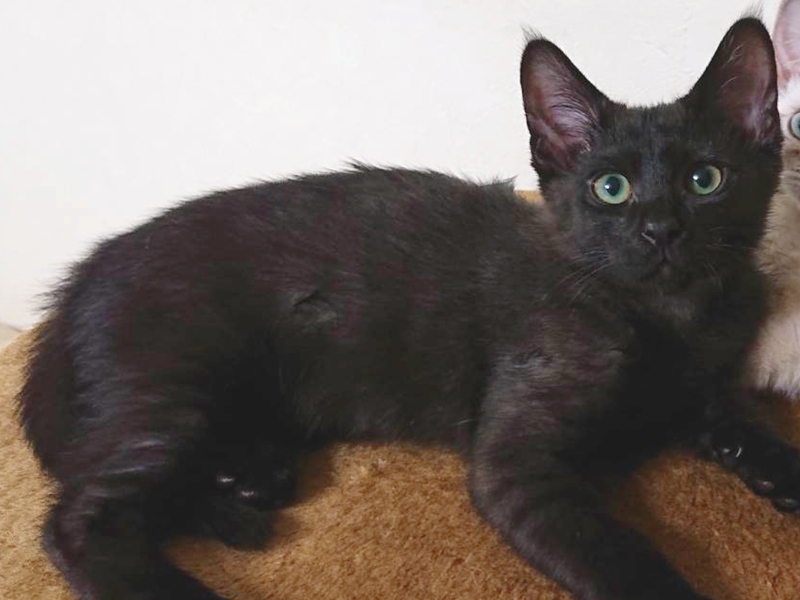 | 特徴(性格など) | ★楽♂ ★毛色:黒 ★生後3ヶ月位 ★避妊:未 ★健康状態:問題なし ★駆虫:済み ★ワクチン:済 ★猫エイズ:陰性 ★白血病:陰性 ★性格その他:3兄妹で1番人懐っこく、他の成猫とも仲良くできます。 食欲は兄妹一でごはんの準備をすると、どこにいてもすぐに飛んできます。 2匹の兄妹はすでに飼い主様が決まり現在は楽ちゃんだけです。 |