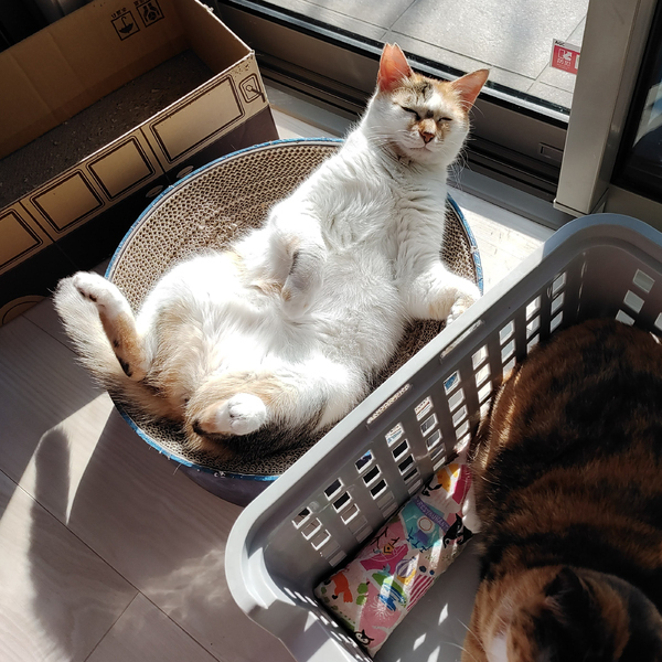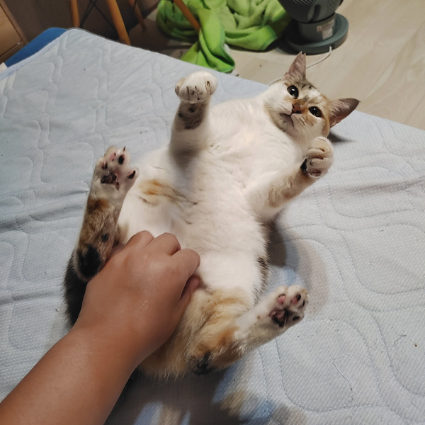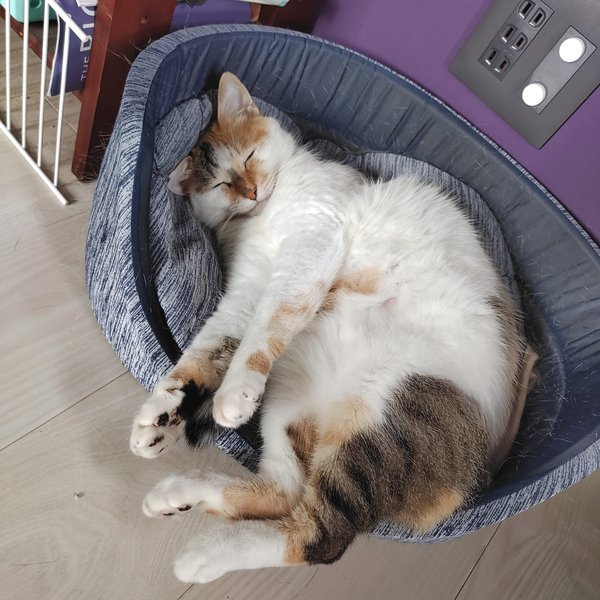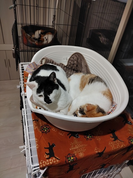 | 特徴(性格など) | ■色柄・見た目 ・ちょっぴり薄めの三毛さんです(パステル三毛) ・ふわふわの毛並みで、まん丸ボディです。 ・尻尾は長毛。 ・童顔。 ・右耳がカットされていますが、女の子です。 ■性格 ・おやつ、じゃらしが大好きで、慎重派ですが遊び好きな性格です。 ・おしゃべりもしますが、基本的には要求の時のみです。要求の声は大きめです。 ・大人の猫さんですので、それほどやんちゃではなく、穏やかな猫さんです。 ・2022年8月まで、警戒心の強い外猫として生きていました。 ・撫でるなどの初歩的なスキンシップは問題ありません。 ・毛布などのもふもふしたものに乗っている時や、おやつをあげている時に撫でると、爆音でゴロゴロ言いながら甘えまくってくれます。 ・人間のことは、少し距離を置きつつも、好いてくれています。 ・抱っこは得意ではないですが、撫でるスキンシップはまったく問題なく撫でさせてくれます。 ■猫との相性 ・オス猫、メス猫ともにそれなりの距離感で生活可能です。 ・一緒に寝たり等は相性によりますが、(先住猫さんがOKだったら)同じ空間での生活には特に問題がないと思われます。同じく当家で里親募集中のピカソとは仲良しで、よく一緒に寝ています。 ・子猫も、当家ではOKでした。(むしろよく遊んであげていました) 穏やかな大人の猫さんですので、落ち着いた子との生活を希望されている方には、特におすすめ出来ます。 ■エイズ・白血球 ともに陰性 |