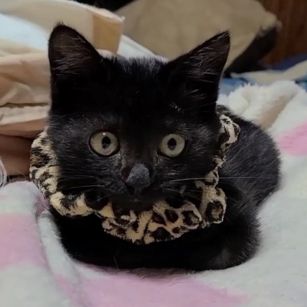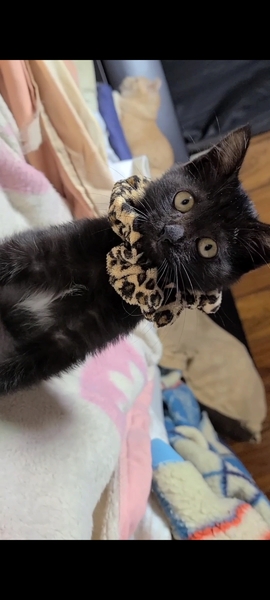 | 特徴(性格など) | 黒猫 胸毛だけ白いのが チャームポイントです♪ シッポは短くてプリプリ振ってて 激カワです(* ´ ˘ ` *)フフフ オモチャ大好きです。 先住猫とも仲良しです。 人の上に乗って寝てきます トイレも失敗なしで 自分から行きます |