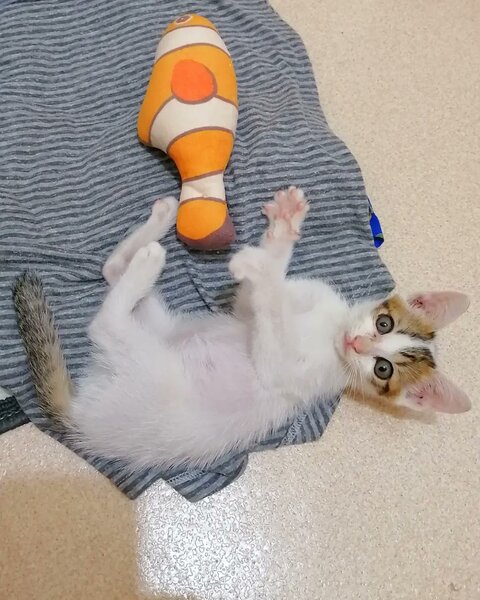 | 里親募集する理由 | 2022年10月19日、ビーチで一匹で泣いている所を保護しました。 先住猫がいるため我が家では飼えないため、急遽里親さまを募集しています。 動物病院にて虫下し、ノミ・ダニ駆除済みですので、安心してお迎えいただけます。 トイレも砂のある場所でキチンとします。 両目もキラキラ綺麗で、特に目立った症状は見当たりません。 10月20日現在で体重は640グラム程です。 カリカリのキャットフードも食べられます。 |