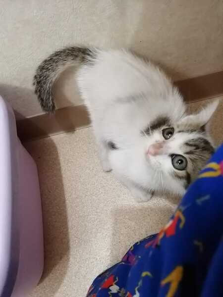 | 特徴(性格など) | とっても人懐こくて、甘えて抱っこして欲しそうによじ登ってきます。 先住猫にも自分から挨拶に行く性格で、とても飼いやすいと思います。 体の大半が白い毛皮で、ピンクの肉球と大きな目がとても可愛いです!! |
