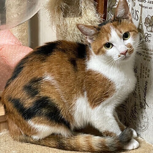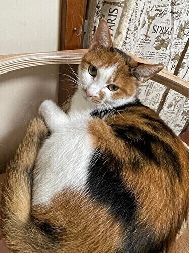 | 特徴(性格など) | 【仮名】くるみちゃん 【性格】幼い身体で子育てを頑張っていたくるみちゃん☆ 2匹の子猫と一緒に保護しました。 子猫たちはあっという間に親離れしてしまい 今度はくるみちゃんが互いにしあわせを見つけます。 撫でる手を引こうとすると手で押さえつけもっと撫でろとせがみます(^-^) 背中を撫でるとお尻を高くします(^-^) 抱っこはまだまだこれから♪ お三毛様=お姫様ですので我がまま要素はあるかもしれません。 くるみちゃんに合わせて仲良しになって抱っこに挑戦していただけたらと思います。 ※1ピキ譲渡可 |