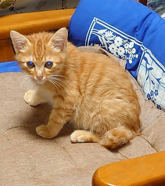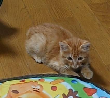 | 特徴(性格など) | 人慣れ途中です 抱っこはできるのですが、腕の中をすり抜けていきます 全身茶トラの男の子です 短いしっぽを振る姿は、ヤンチャ坊主そのものです |
