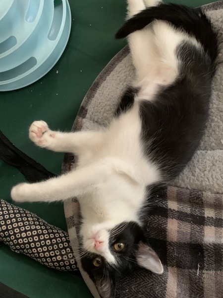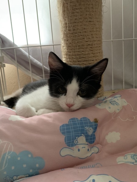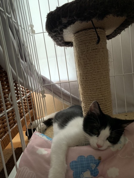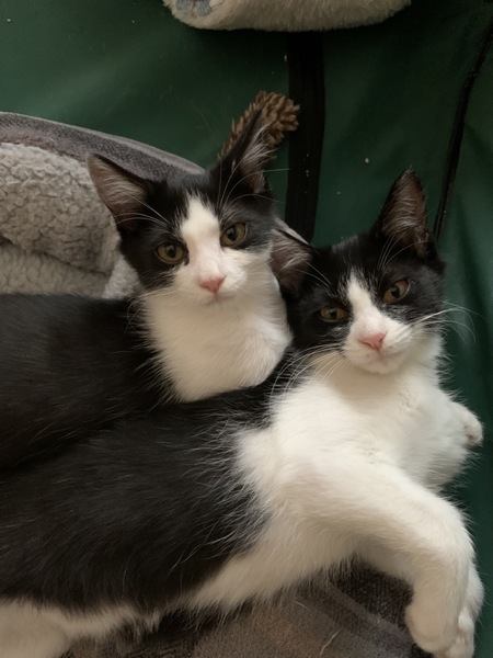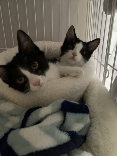 | 特徴(性格など) | 仮名)みるく 白黒はちわれの女の子 くるみと比べると慎重派だが甘えん坊です。 とても食いしん坊です。 仮名)くるみ 白黒はちわれの女の子 元気いっぱいの甘えん坊です。 |