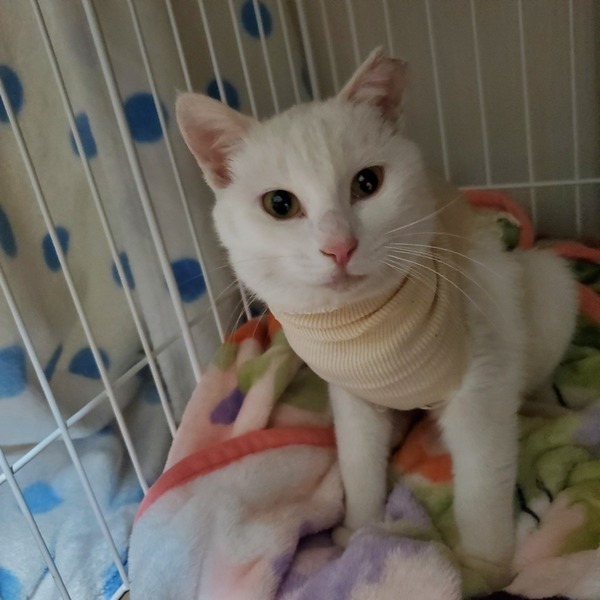 | 特徴(性格など) | 10月25日に避妊手術しました。 白の1歳から1歳半になる美人猫です。 慣れたらスリスリしてきます。 |