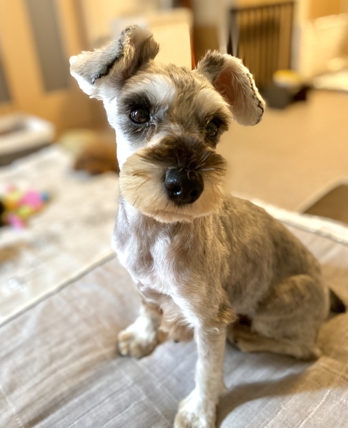 | 特徴(性格など) | ●特徴(色柄・性格など) 【カラー】ソルト&ペッパー 【体重】4.8kg 【性格】わんこにちょっかいを出されても怒らない優しい子です。犬とは問題なく一緒に過ごせてます。控えめでマイペースです。人にはとても甘えん坊で、そっと近くに寄り添ってきます。 【ご飯】ドライフードに缶詰トッピングでよく食べてます。食欲旺盛です。 【お散歩】これから練習します。 【お留守番】フリーで大人しく出来ています。 【トイレ】シートの認識があり、シートにする時もあります。 【その他】小さめのシュナウザーですが運動能力は高いです。安全対策は十分にお願いします。 |
