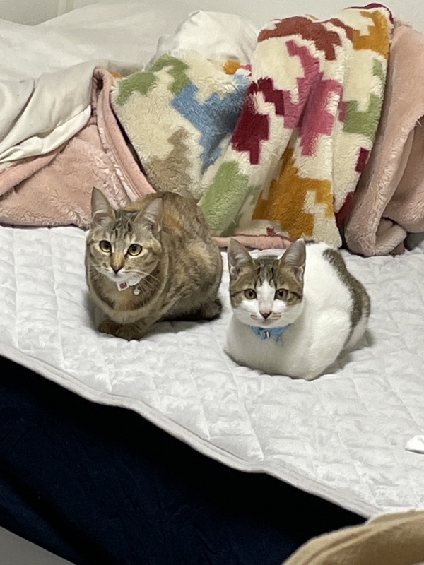 | 特徴(性格など) | 美人なキジちゃん 大人しく静かですが遊ぶ時は思いっきり遊んで疲れると飼い主を無視するくらいに寝ます!甘える時は膝の上に急にきてゴロゴロ言いながら寝たり撫でてるとお腹も撫でてとヘソ天しちゃいます。 可愛いはちわれちゃん 女の子だけど男の子ぽく遊ぶのが大好きで甘えん坊です ねずみのおもちゃが大好きでかまって欲しい時は自分でおもちゃを持ってきてこれ投げて!と催促してきます? お腹にミッキーのような模様があり甘えたい時は自ら寄ってきてスリスリしてくれます?甘えがヒートアップするとフミフミしてくれます! 2匹とも、ごはんと言うと別の部屋にいてもダッシュで飛んできて大人しく待ってくれます 2匹とも完全家猫として迎え入れたので不妊去勢してません。 |