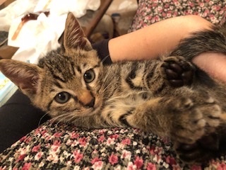 | 特徴(性格など) | <初期医療> 健康状態:良好 ウイルス検査:陰性 ワクチン接種:済み ノミダニ駆除薬:済み 糞便検査:済み 甘えん坊で可愛いキジトラ子猫です。フードもよく食べ、トイレもバッチリです。 抱っこも大好きで、ゴロゴロ甘えてきます。いっぱい遊んでスヤス寝ています。 初心者のご家族様で大丈夫です。 子猫なので、お留守番の少ないおうちを希望します。 1匹でも可能ですが、兄弟(妹)と一緒に行けたら嬉しいです。 ジェームスの日々の様子は、以下のブログをご覧ください。 ピコ22(ニャンニャン)ブログ → https://ameblo.jp/toko-chino/ |