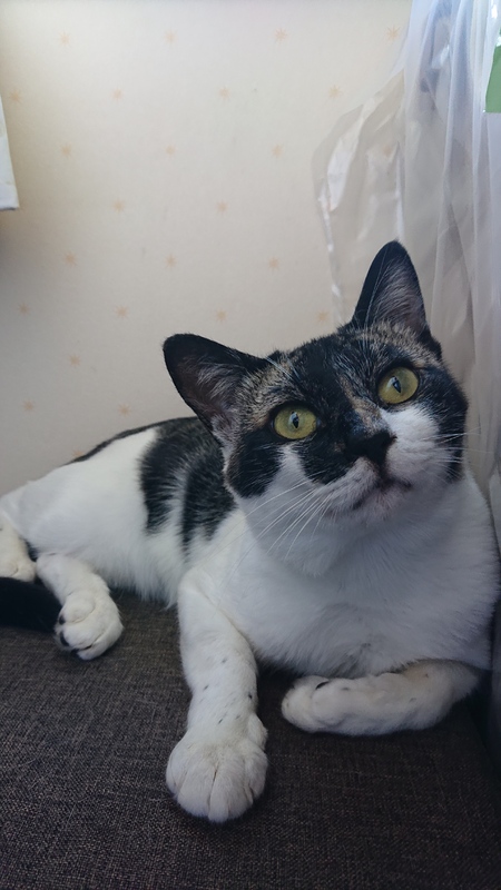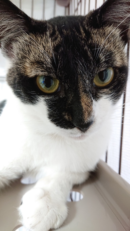| 特徴(性格など) | オスで三色の毛を持つ猫ちゃんです。 招き猫のように福を呼んでくれるかもしれません。 甘えん坊の寂しん坊でとてもかわいいです。 元々野良だった子を保護したので、一人一人の人間に馴れるまでは少し時間がかかります。 |
