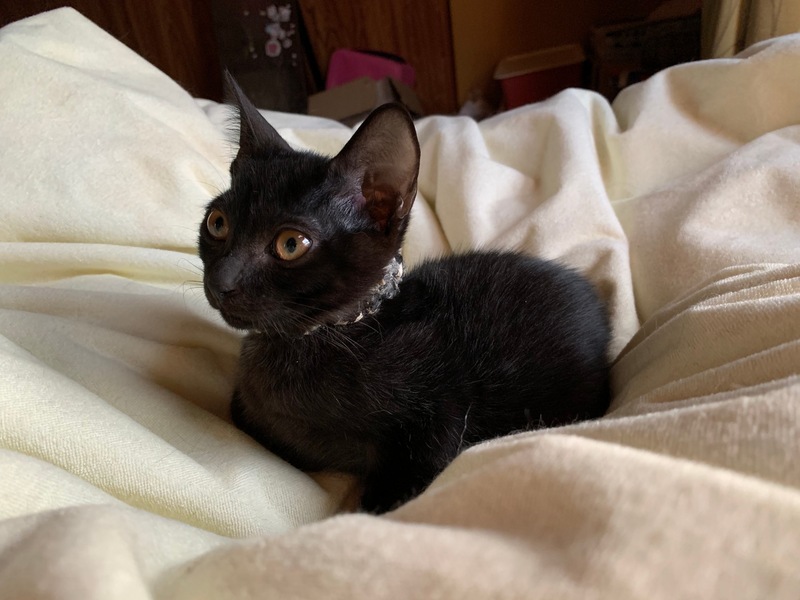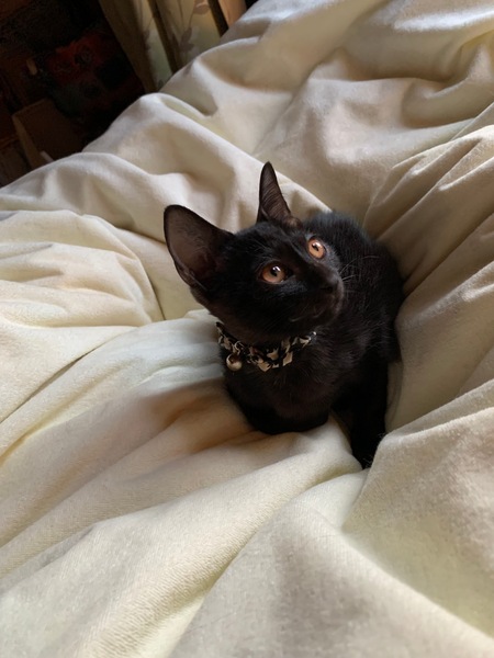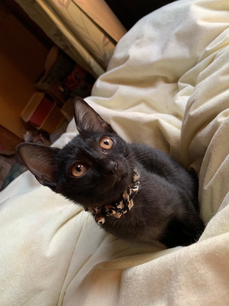 | 特徴(性格など) | 黒猫くん、 小柄ですが愛嬌があり、しっぽは長くて綺麗なストレートです。里親募集をしてほしいとのことで保護主から依頼があり私の方で保護しております。 ウイルス検査、白血病共に陰性です。 ワクチン1回目済 ご飯はドライ、ウエット混合で卒乳済 1度飢えていた経験があるからか、ご飯の時之が月がすごく元気な男の子です。 |