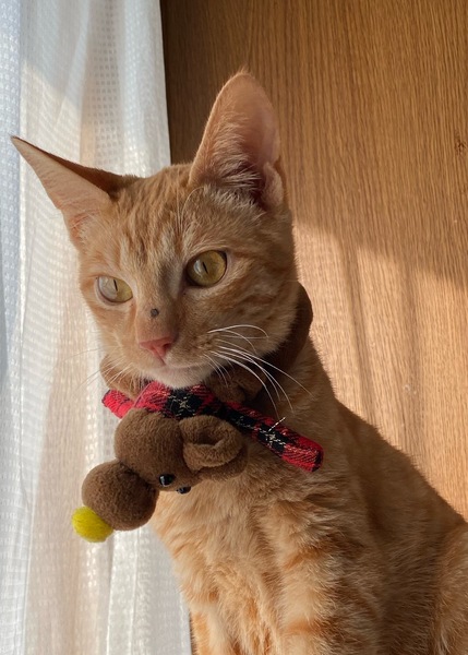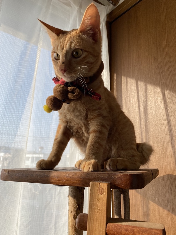 | 特徴(性格など) | ボブテイルがかわいい茶トラの男の子です。 好奇心は旺盛ですが、落ち着いています。 穏やかで優しい雰囲気の子です。 |