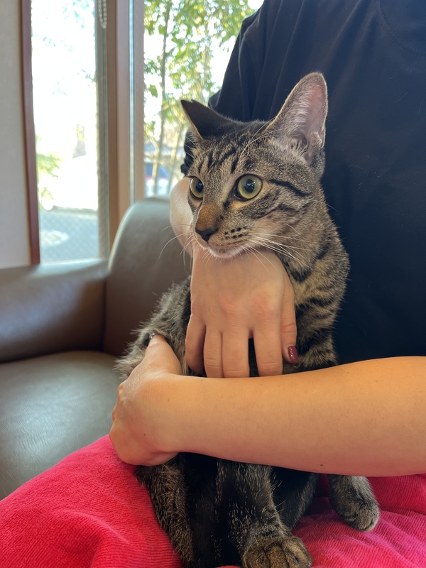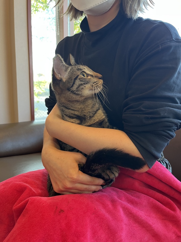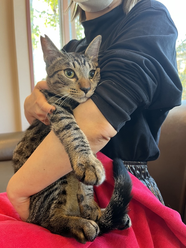 | 特徴(性格など) | キジトラの男の子 しっぽは長くて真っ直ぐ おトイレもばっちりです。 2ヶ月半の時に保護されていますので 人馴ればっちりです^_^ 人を見るとすぐに寄ってきて甘えてきます。 そして抱っこして撫でるのをやめると にゃ〜!と催促してくる人懐こいこです。 生後半年になりますので 見た目は大人のような体つきになりましたが 中身はまだまだ遊びたい無邪気な猫ちゃんです。 何となく笑ってしまう愛らしいこです。 兄弟は黒猫の男の子です。 依存しあっているわけではないので 離れ離れになってもそれぞれ大切にして下さるお家に繋がれば良いと思っています。 |