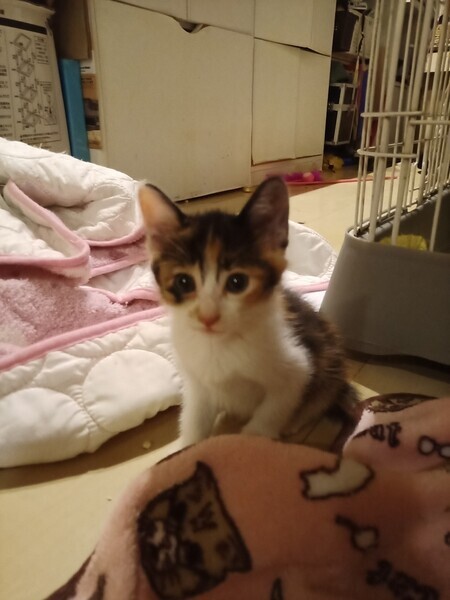 | 里親募集する理由 | この子含めて5兄妹をこちらで募集して 一度全て里親さんが決まり募集終了にした保護子猫です。 他の4匹は28日で譲渡がおわり、誓約書も交わし終わってます。 この三毛ちゃんも 10月29日に譲渡日程も決まっており 昨日里親さんの元へ長距離お届けにいったものの着いて電話をしてもその方電話にでず メールにて〇時まで自宅付近で(恐らく前)でお待ちしますが折り返しのご連絡がない場合今回の譲渡はキャンセルで帰らせて頂きます。 とショートメールを送り既読の後再度電話をした所繋がったと思った瞬間切られたので そのような方に小さな命をお預けすることは出来ないのでその時点で帰路につきました。 里親募集の妨害か、ひやかしか、嫌がらせか何を考えているのか分かりませんが この月齢の子猫に長距離の移動は負担になるのに往復200キロ我慢してくれた良い子です。 とても聞き分けがよく人馴れしており 最後の最後で可哀想な事をしてしまった子なので素敵なご家庭の家族としてお迎えいだきたく思っております。 ⬇は最初の募集の保護の経由等のコピペです(少し手直ししてあります) 9月の半ばの大雨の日に子猫の鳴き声がして探し回ったらびしょ濡れでヨレヨレになったダンボールにいれられて捨てられてる 生後10日の瀕死のこの子達を保護しました。 2匹はかろうじて目はあいていたものの 他は猫風邪で目も鼻も塞がっており 急いで連れて帰り乾かし保温 ミルクと常備している補液、抗生剤の点眼で朝まで待ち、朝イチで獣医にて 抗生剤の注射とノミ取りをしてもらいました。 うちでは既に複数猫を飼っていることと保護をする事が多いため これ以上は飼うことが困難なので この子達の里親さんになっていただける方を募集します |