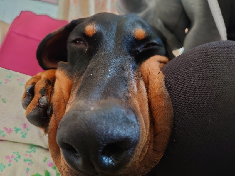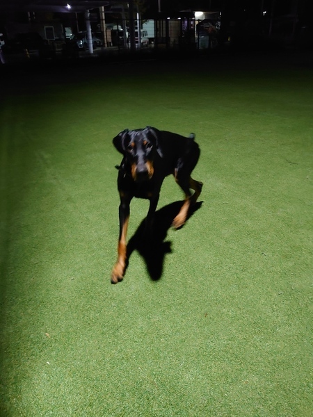 | 特徴(性格など) | 元気いっぱいなドーベルマンの子犬です。ドッグランでは、人にもワンコにも愛嬌をふりまくので人気です。特に人が大好き、ベッタリなつくのでとってもかわいいですよ。体重18キロ前後。アメリカンの痩せ型かな。テレビの前では、おすわりして一緒に見ています!オジサンのようなイビキを時々かきます。一緒に寝るととても暖かいです。動き方が子犬らしさを感じるときがありとても可愛いです。 | ||