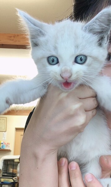 | 特徴(性格など) | 白地にシャムミックスのようで 身体には薄茶色が混じってます | ||
