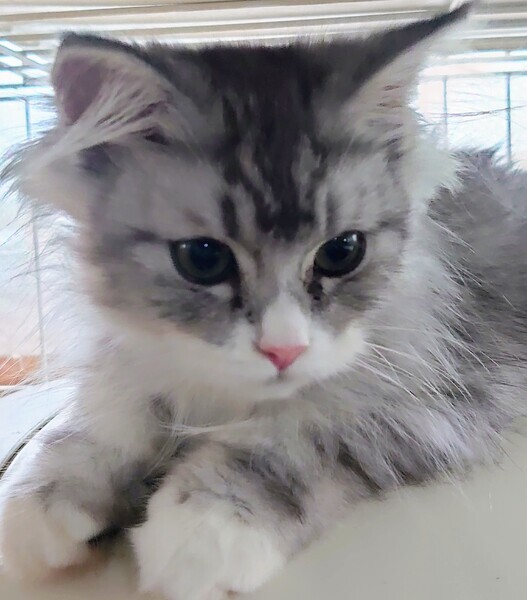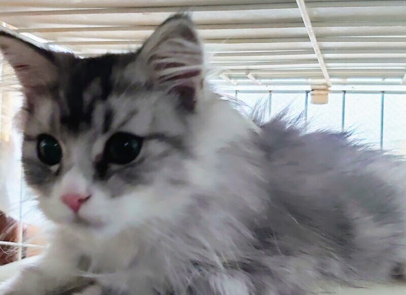 | 特徴(性格など) | 優しい長毛シルバータビー坊や「銀河」(仮称)。 ミヌエット、サイベリアン、ラグドールのミックス坊やです。 写真:1枚目から6枚目が銀河。7枚目がパパ猫の長足ミヌエット。8枚目がママ猫(ラグドールとサイベリアンのミックスで、ラグドール風の容姿)。 パパ猫:長毛・長足のミヌエット。毛色はホワイトとクリームのモヘアのような超長毛。瞳は黄色。 ママ猫:長毛ミックス(ラグドールとサイベリアンネヴァマスカレードのミックスで、青い瞳のブルーポイントバイカラー)。 銀河:長毛・長足のシルバーポイント・バイカラーのミックス坊やです。 銀河の毛色は銀と白で、銀色の部分は毛先が銀、根元が白。毛は根元から伸びるので、成長するにつれ、全体的に毛が白っぽくなります。 同胎3匹(マーブル、銀河、マルク)の中で性格的に一番おとなしくて優しい子で、自分より小さなまだ母乳が飲みたい子猫に、自分の手足やお腹を吸われても、黙って吸わせてやっていました。毛の長さは現時点で既に一番長いです。(他の2匹もそのうち伸びてきますが。)瞳の色は黄色か黄緑(変化する可能性があります) 顔は八割れ。 鼻筋は上の方がシルバー、舌の方が白。手足の先のポイントカラーも白。 かっこよく言えば、シルバーポイント・バイカラー・リンクス(シルバータビー)。 (=全体的に銀色で、鼻筋や手先に白のポイントカラーが入っている八割れの縞々猫) 可愛い男の子。 パパ猫ミヌエットがモヘアのような毛(参考:7枚目の写真)ですが、銀河は長毛でも、今のところもつれていません。 モヘアの毛は繊細で美しいですが、もつれやすいです。ただし、現時点では銀河の毛はミヌエットのモヘアのようではなく、どちらかというと祖父猫ラグドールに似てビロードかベルベッドのようで、もつれていません。でも、ブラッシングしなければ毛玉ができる可能性大ですので、頻繁にブラッシングしてやってください。 一旦毛がもつれたら、ブラッシングを痛がってブラッシングを嫌がるようになります。ブラッシングできなくなって更にもつれてフェルトのように固くなると、ペット用バリカンでも刈れなくなります。この場合、麻酔をかけてハサミでカットすることになりかねません。大人しい猫でも、ハサミでカットすると皮膚を切る可能性がかなり高くて、万が一首の頸動脈などを切ると死ぬからです。 銀河は、撫でてもらったりマッサージしてもらったりするのが大好きな子で、ゴロゴロ言いながら人間に寄ってきます。 多頭飼い(猫)で育ったので、猫とも仲がいいです。 多頭飼いでわいわい楽しく育っていますので、必ず猫2匹以上(5匹以下)で飼ってやってください。 ペットではなく家族として飼ってください。 特にサイベリアンは犬的な性格もあり、家族思いで、飼い主が冷たいと早死にするとも言われています。 サイベリアンの血が1/4のこの子でできるかどうかはわかりませんが、サイベリアンにボール遊びを教えれば、犬のようにボールを取って来るそうです。 |