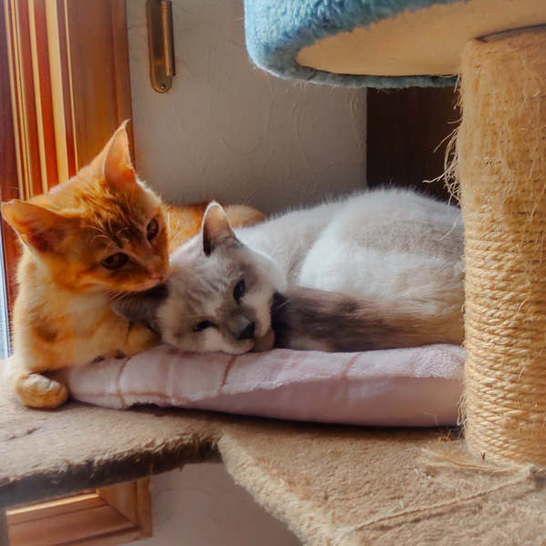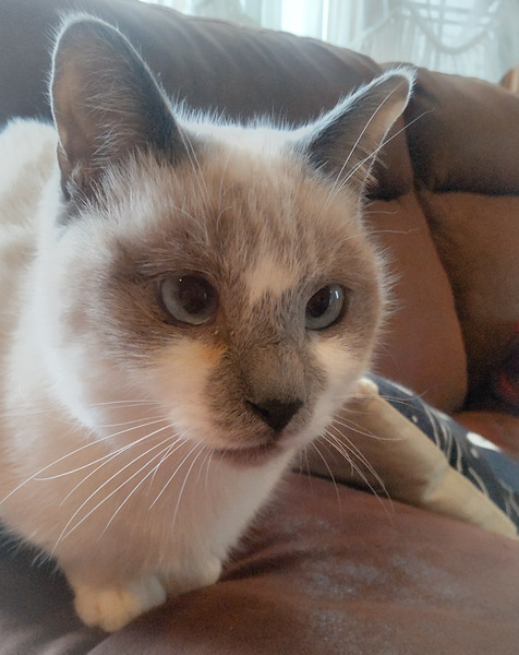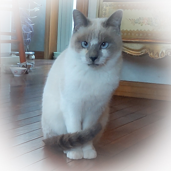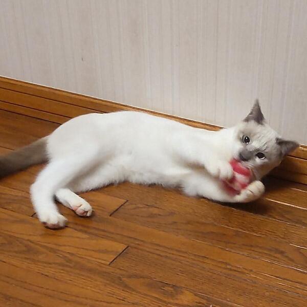| 特徴(性格など) | 青い目、シャム風♪ だんだん顔の色が濃くなり、タヌキ顔になってきました… 慣れると、隣でゴロンとお腹を見せてくれる、ご機嫌なコ。 正面から甘えるタイプではなく、気がついたら、後ろや横でコテっしてるツンデレさん。 抱っこや束縛はキライなようです。けど、隣にいて、撫でられるのは好きみたいで、ゴロゴロいいます。 よく遊びます。 布製小物が好物で、隙を見せると、靴下やスリッパをかっさらっていきますので、ご注意!(笑) 他の猫も大好きです。 |