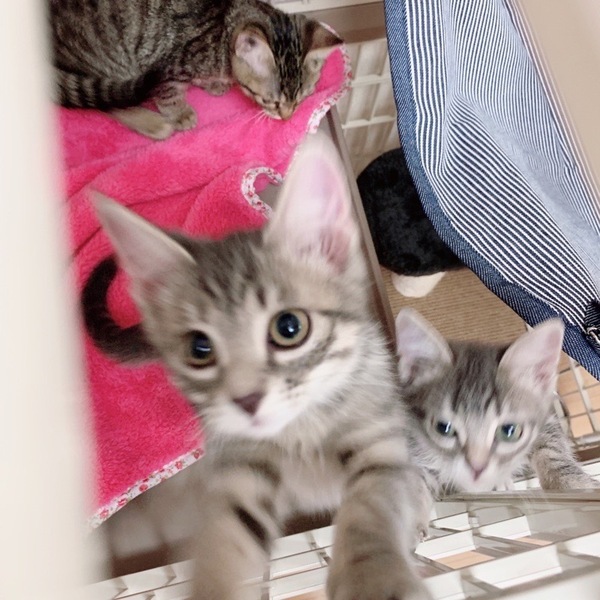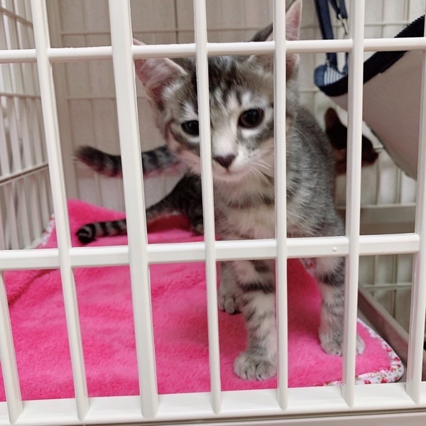 | 特徴(性格など) | 3姉妹の中でも特に遊びのパワーが凄いです(笑)なかなかの運動神経でとても活発な女の子です。 人馴れも問題なく、撫でて~と寄ってきたり、抱っこもOK。撫でるとゴロゴロと喉を鳴らしてくれます。 綺麗なサバトラで尻尾も長く、かなりの美人姉妹で、とても仲良し。 が、ご飯時は姉妹のひろちゃんとお互いのお皿を狙いながら(笑)ものすごい勢いで食べています。 2匹一緒のお迎えも大歓迎です! また、脱走対策はしっかりお願いしたいと思っています。 対策等でわからないことは アドバイスさせていただきますので、疑問点などは遠慮なく聞いていただきたいです。 ご自宅の玄関や開ける窓、ケージを置くお部屋などのお写真をご持参いただきますと、より具体的なお話ができると思います。 |