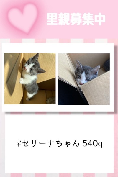 | 里親募集する理由 | 会社の近く居たのですが環境が悪かった為、保護しました。 4匹兄妹でとても仲良いので出来れば兄妹で飼ってくださる方を探しています。 |