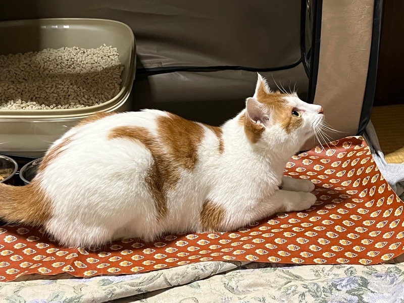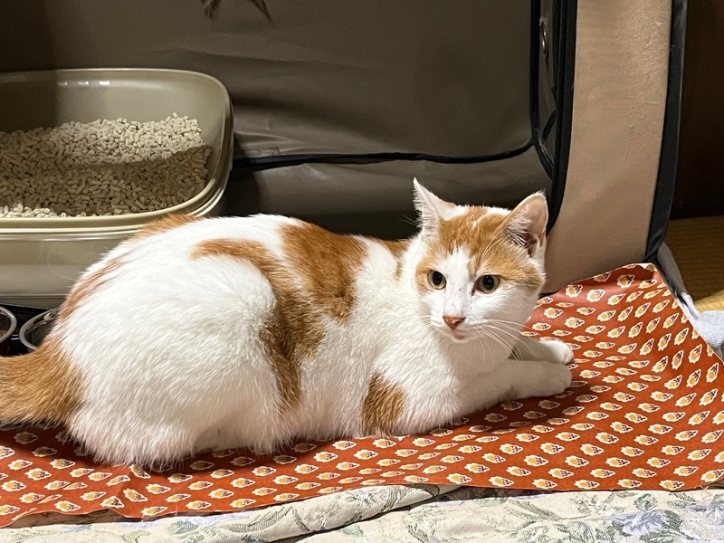 | 特徴(性格など) | 推定5~6歳、5kg、甘えん坊の男の子。 どうやら内弁慶らしく、知っている人と知っている場所では暢気者でしたが、初めての人や初めての場所にはカチコチにフリーズします。慣れてくるとルンタッタ♪とスキップみたいに近寄って甘えてきます。 他の猫を怖がるので、多頭飼育には向かないかもしれません。 よろしくお願いします。 |