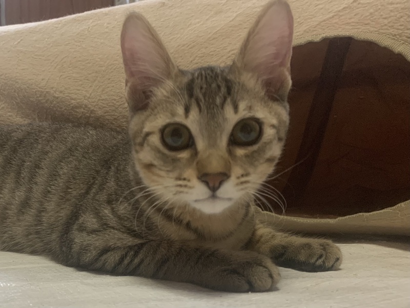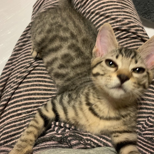 | 特徴(性格など) | 小柄で甘え上手な末っ子気質、とってもキュートなキジトラの男の子、ピコちゃんです。 ご飯より、おもちゃよりも、人が好き!といった感じで、すぐにぴょんっと膝に乗ってきて、そのままコテンと丸くなり、ゴロゴロ言いながら甘えん坊モードに入る、、、愛されるツボを心得ております(^^)。 優しい栗色をした毛はサラツヤで、撫でていて癒されます。 遊ぶのも大好きで、夢中になってネズミのおもちゃを追いかけます。遊ぶときに(不必要に(笑))ぴょんっと跳ねる姿がかわいいので、ニックネームは「ぴょん太」。初めての人には少し人見知りをする内弁慶タイプでもあります(5分くらいで出てきますが)。 とにかく人なつこくて良い子なので、ご家庭に笑顔と安らぎと、笑いももたらしてくれる子だと思います。 ぜひ一度、お気軽に、直接、もしくはビデオ通話で会ってみてください。 1匹でのお迎えはもちろん、兄弟一緒(ココちゃん&ピコちゃん)のお迎えも大歓迎です。 兄弟のココちゃんの紹介・募集ページもありますのでぜひご覧ください(=^x^=) ◎ミルクから育てましたので人慣ればっちりです。人に対する基本的な信頼感があり、人懐こく、甘えん坊です。人見知りもほとんどしません。他の猫に対してもフレンドリーです。 ◎やんちゃ坊やですが、気性が穏やかで、これまでたくさんの子猫を保護してきた者から見ても「いい子だなー」と感じる子なので、猫の飼育が初めての方にも育てやすいと思います。 ●月齢:推定3〜3.5か月くらい ●性別:男の子 ●健康状態:良好。とっても元気です。 ●エイズ・白血病陰性、駆虫済み ●トイレ指定の場所でちゃんとできます。 |