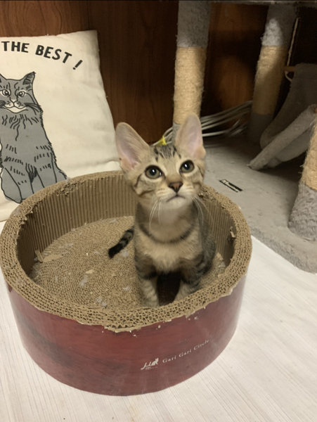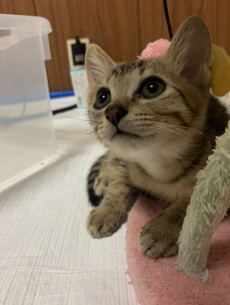 | 里親募集する理由 | 排水路にうずくまっているところを保護しました。保護当初はまだ乳飲み子でしたが、ミルクを飲んですくすく育ちました。 現在一時預かりしている家では他にも複数の猫がおりずっと飼うことはできませんので、大切にしてくださる家族を必要としています。 |