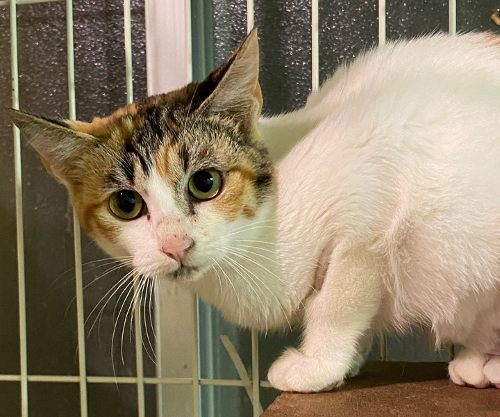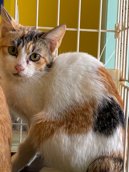 | 特徴(性格など) | 白が多い三毛猫の仔猫です。 おとなしくて、静かな子です。 まだ、緊張していることもあるからかもしれません。 白が多いので、少し変わった柄が魅力です。 |