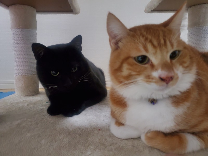 | 特徴(性格など) | 【黒猫】慣れると遊んでくれます。撫でられるのが好きでゴロゴロ鳴いて甘えます。脚が長くてスラッとしたイケメン猫です! 【茶白】臆病な子です。お鼻にホクロみたいなのがあります。いつも困った顔をしていてかわいいです!黒猫より一回り小さめ。 |